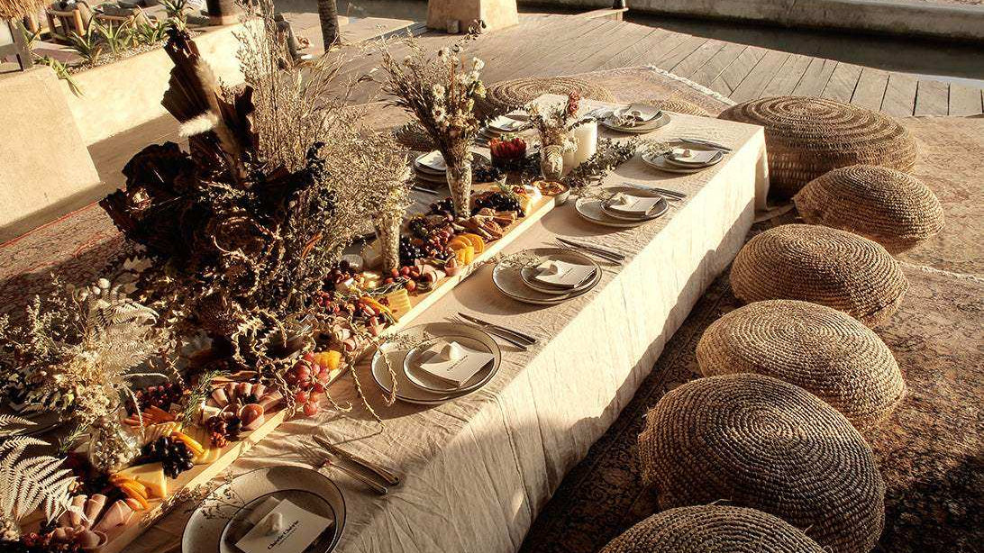 Taking styling cues from the spirit of Nomàd by Magali Pascal, we sourced bohemian rugs inspired by our travels, natural fabric cushions