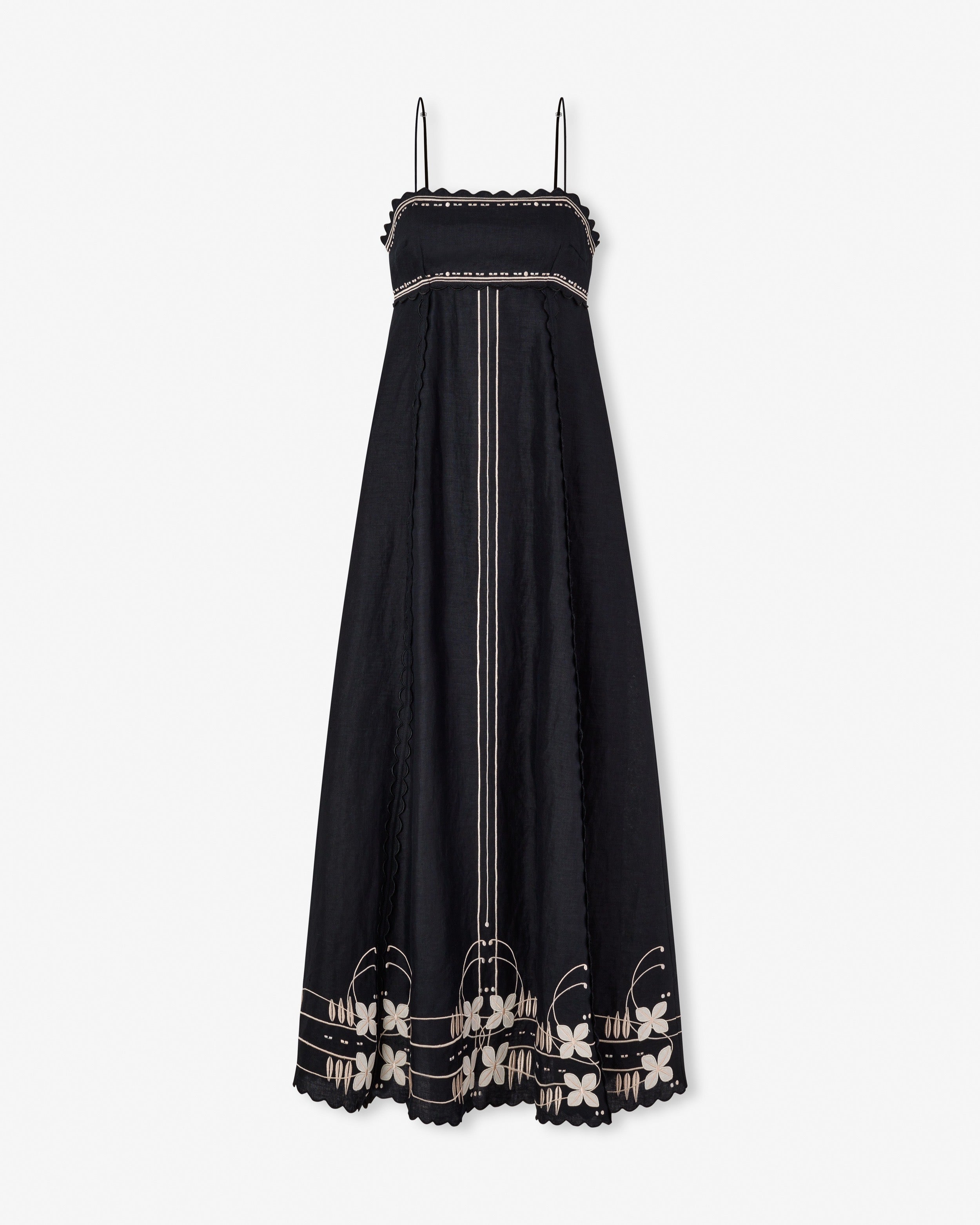 The Charles Applique Embroidery, with its bold graphic look, is inspired by the artistic elegance of Paris's Belle Epoque, reimagined with a modern edge. This design plays with transparency and volume, creating a look that is both dramatic and decorative. This dress, with its clean lines and intricate detail, embodies a new era of expression.