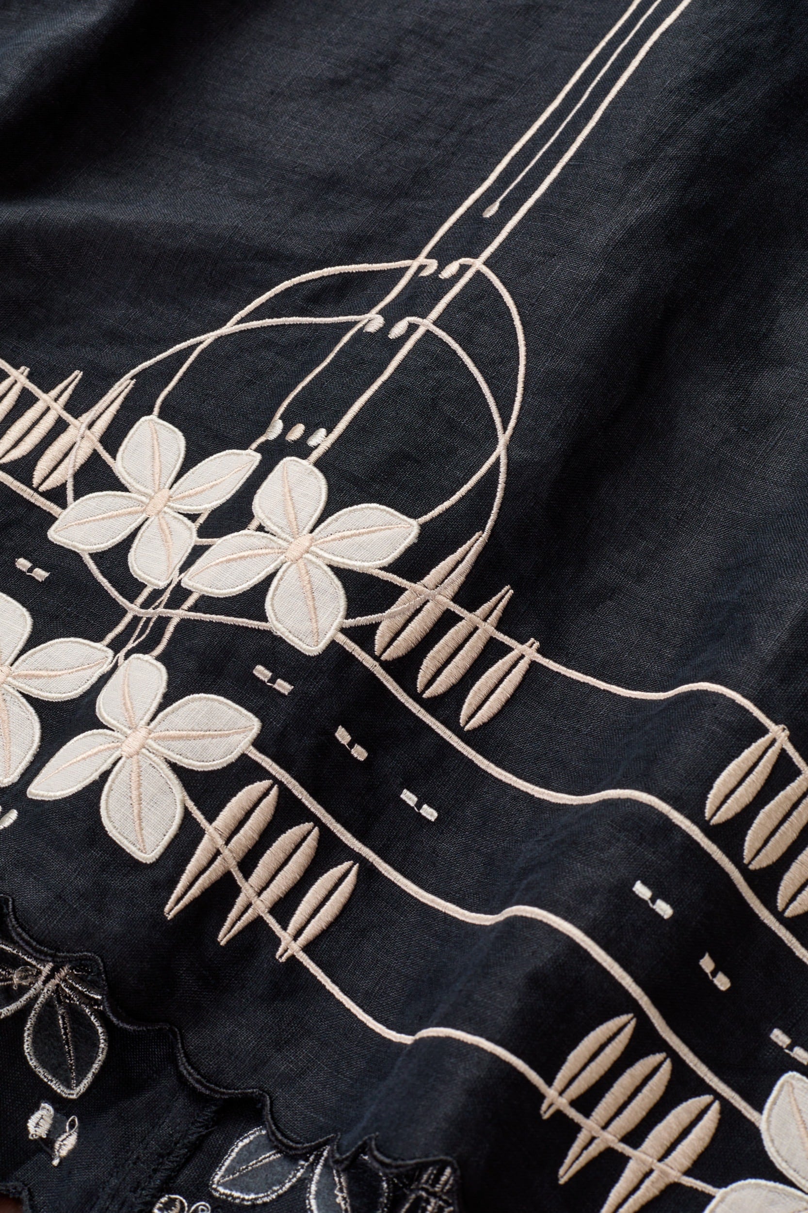 Intricate applique embroidery detailing.