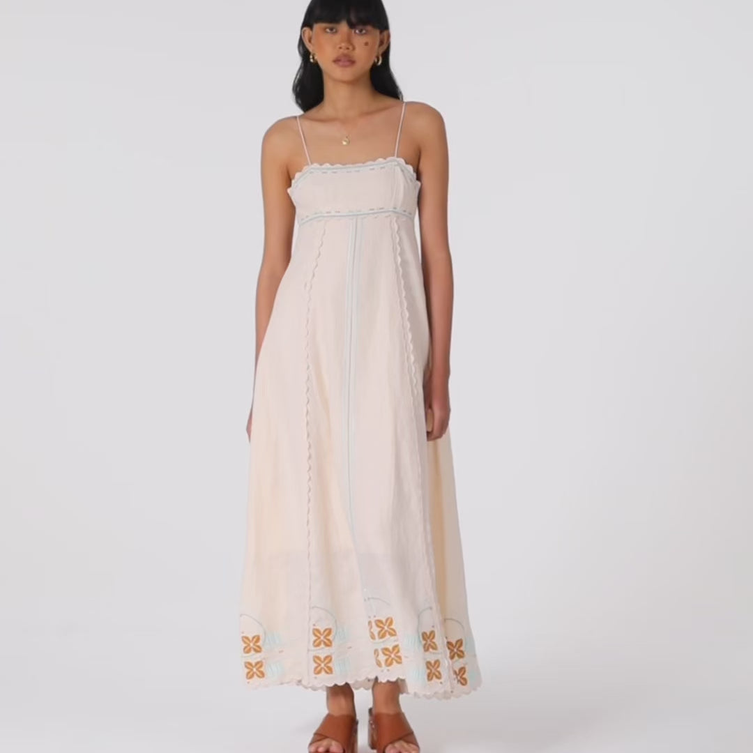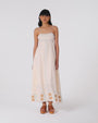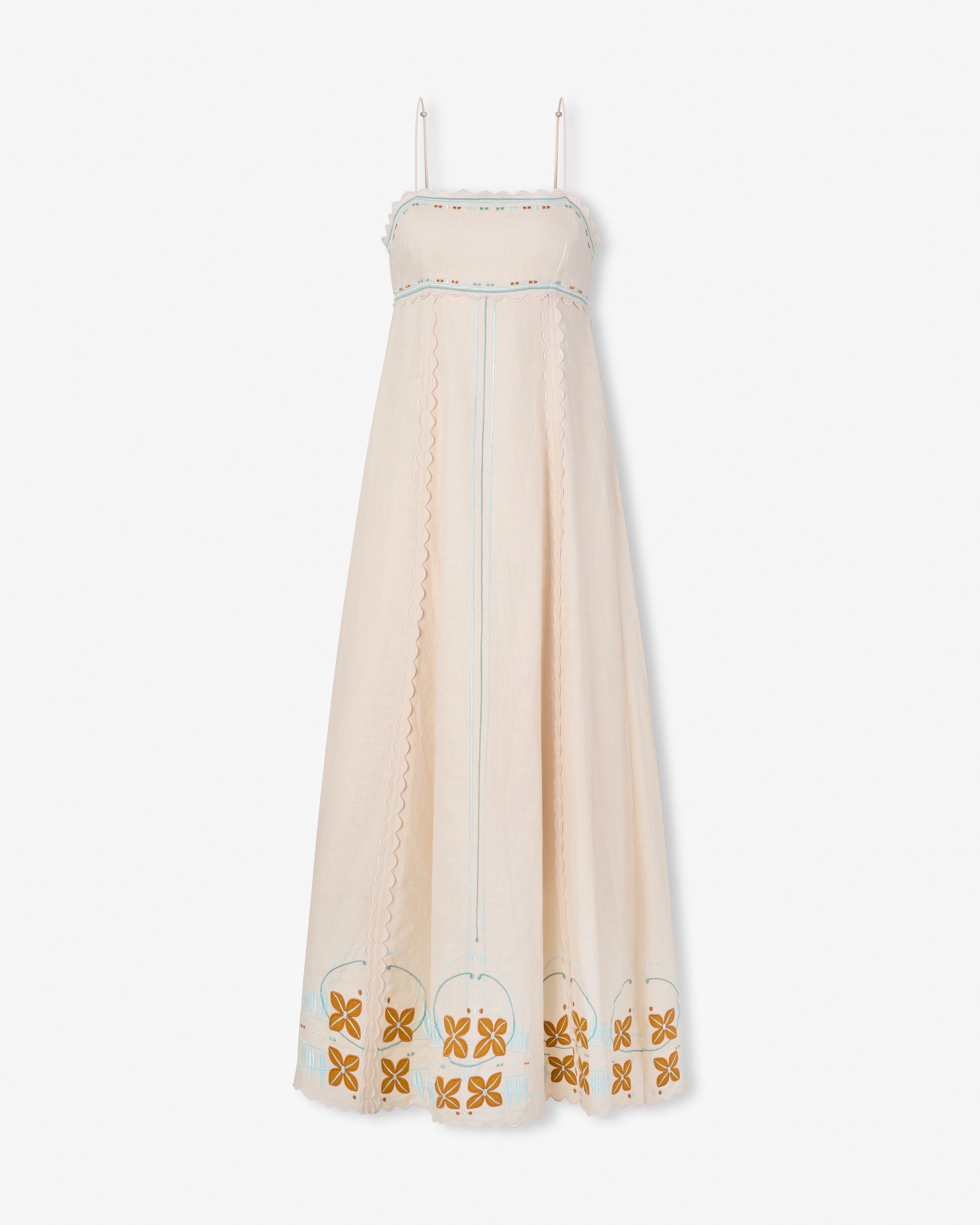 The Charles Applique Embroidery, with its bold graphic look, is inspired by the artistic elegance of Paris's Belle Epoque, reimagined with a modern edge. This design plays with transparency and volume, creating a look that is both dramatic and decorative. This dress, with its clean lines and intricate detail, embodies a new era of expression.