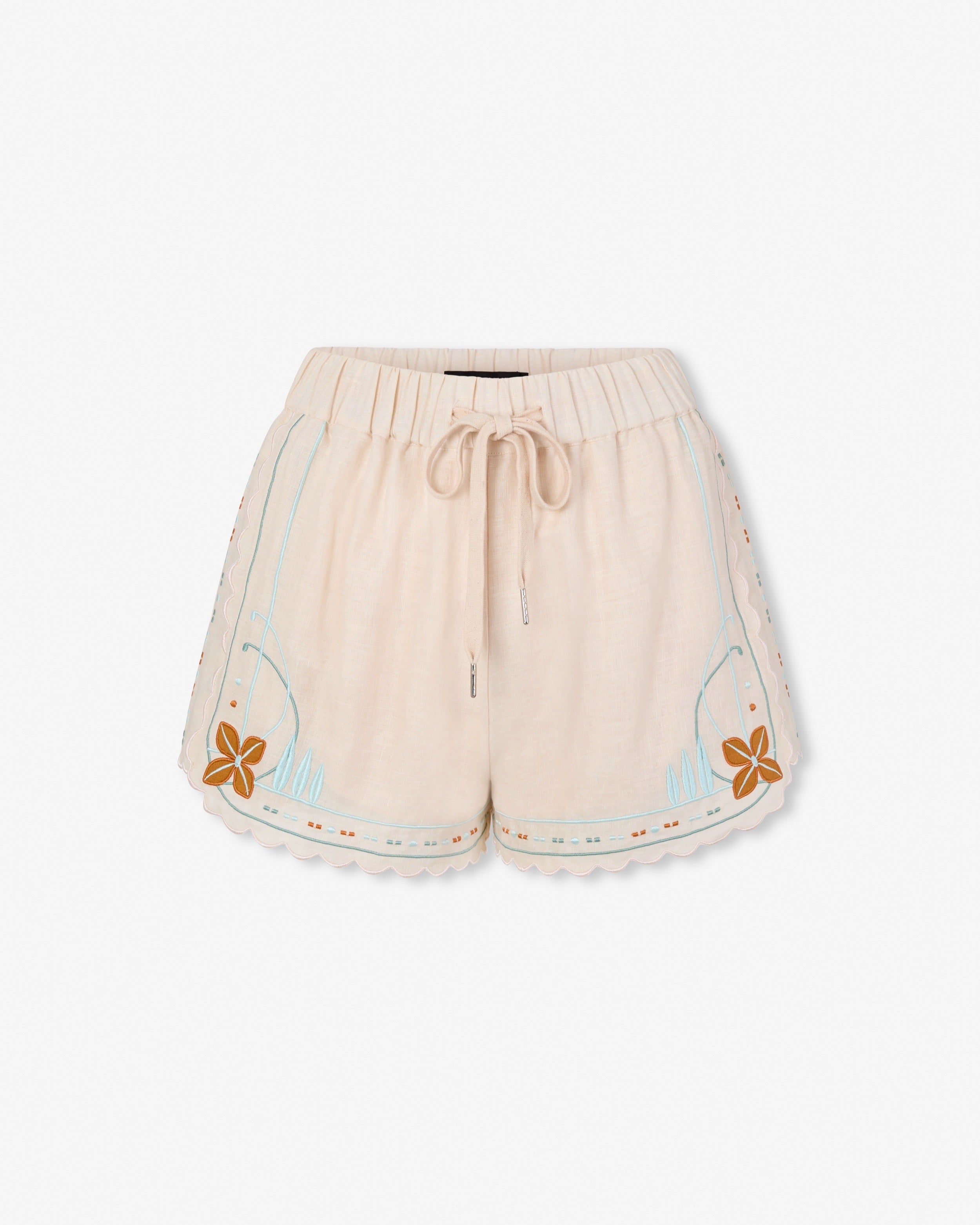 The Charles Applique Embroidery, with its bold graphic look, is inspired by the artistic elegance of Paris's Belle Epoque, reimagined with a modern edge. This design plays with transparency and volume, creating a look that is both dramatic and decorative. These shorts, with their clean lines and intricate detail, embody a new era of expression.