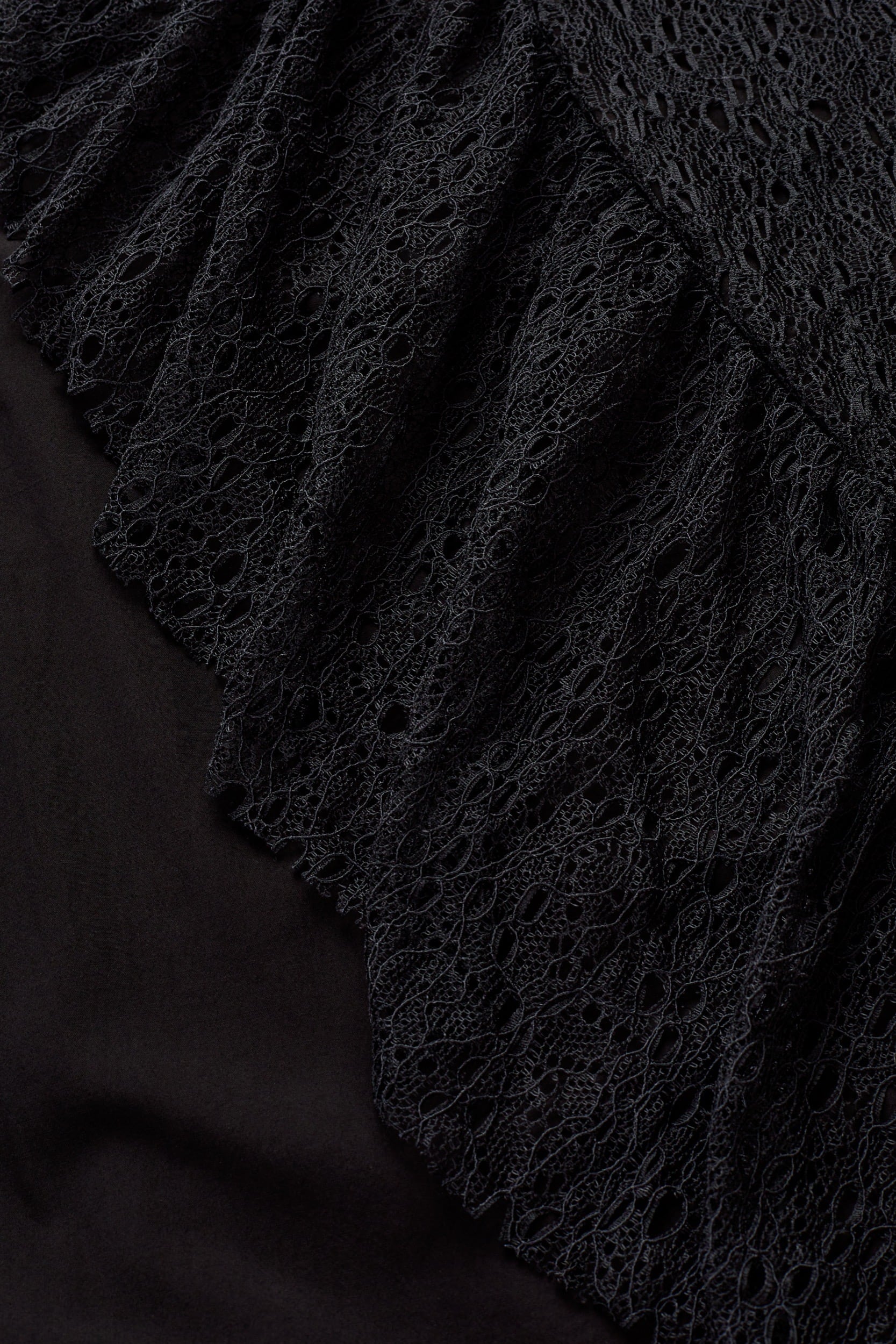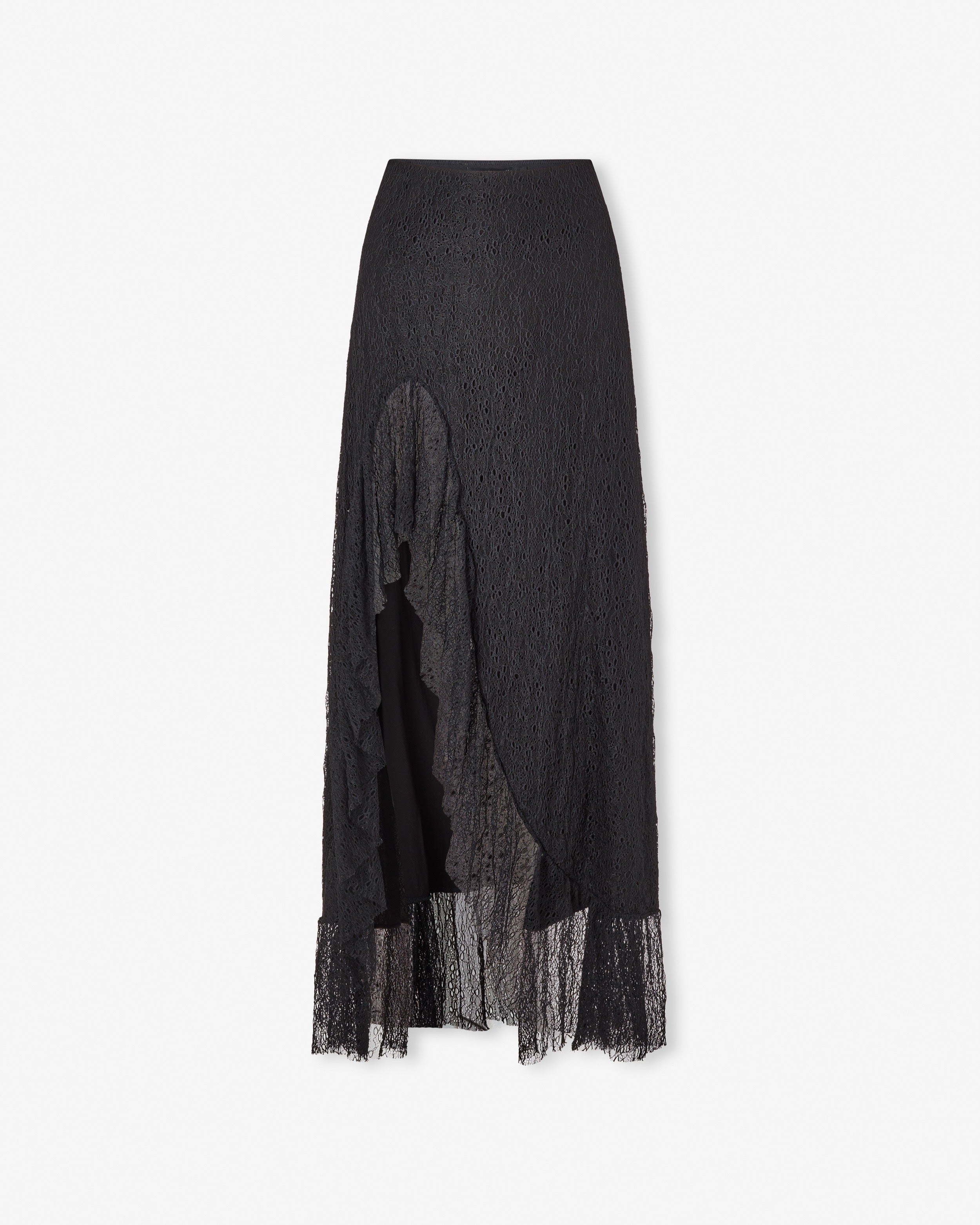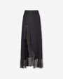 This beautifully romantic piece from the Silk & Lace story embraces movement and transparency with a creative take on archive styles. The flowing silhouette and a frilled open front embody the fluid grace of the collection, creating an elegant and ethereal look.