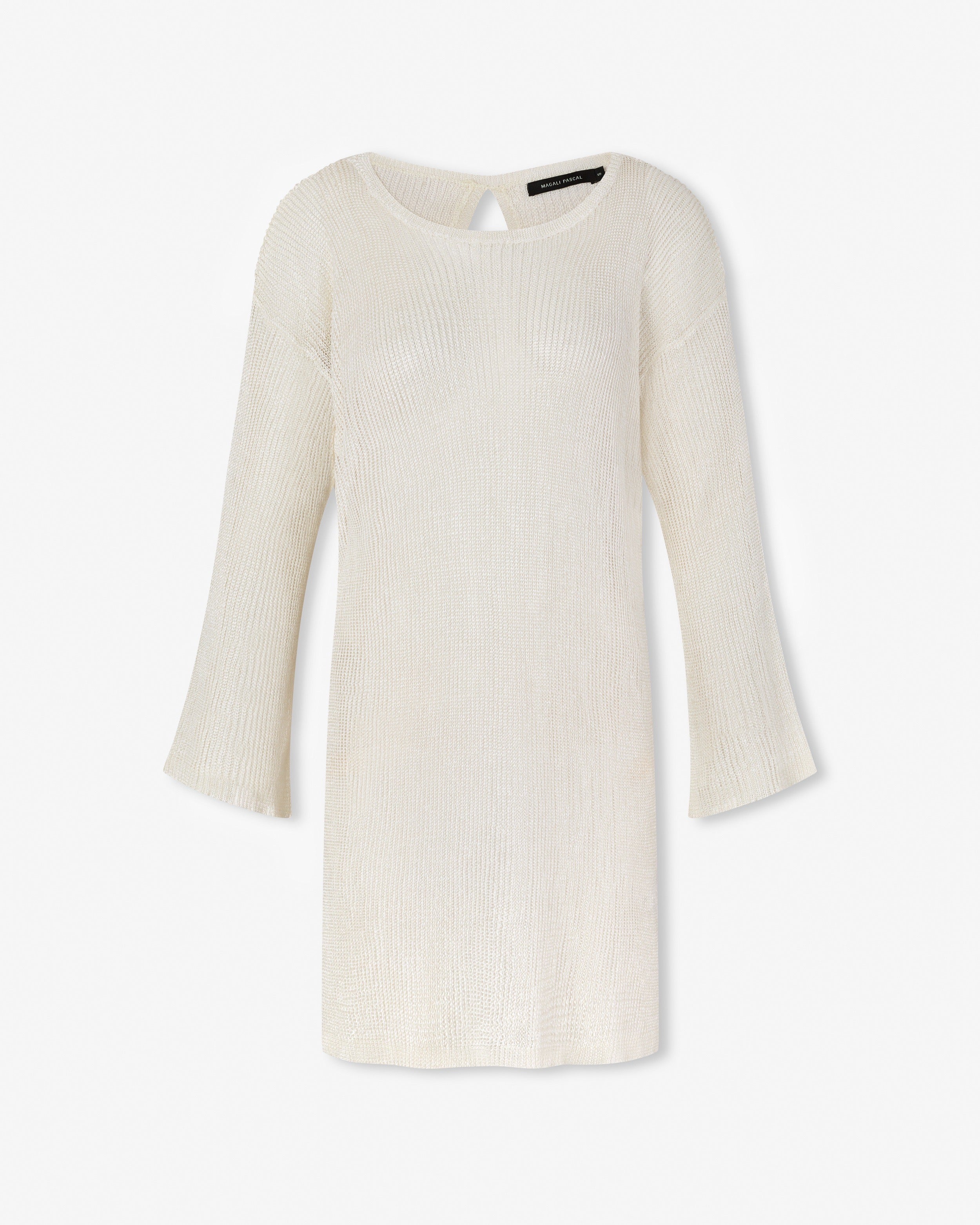 The delicate knit provides a see-through effect, while the sparkling finish adds a touch of glamour, creating a look that is perfect as a chic beach cover-up or for a poolside party.