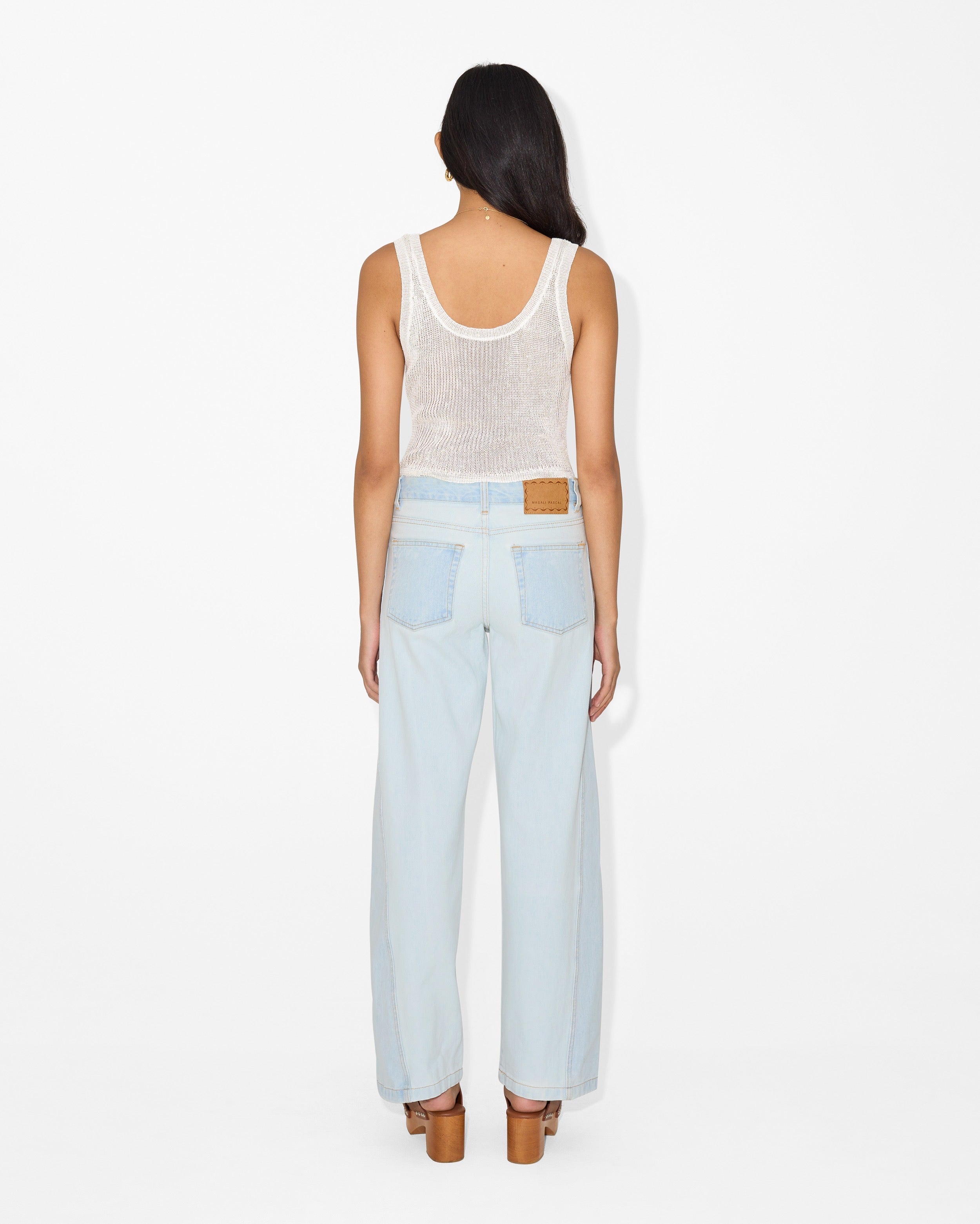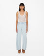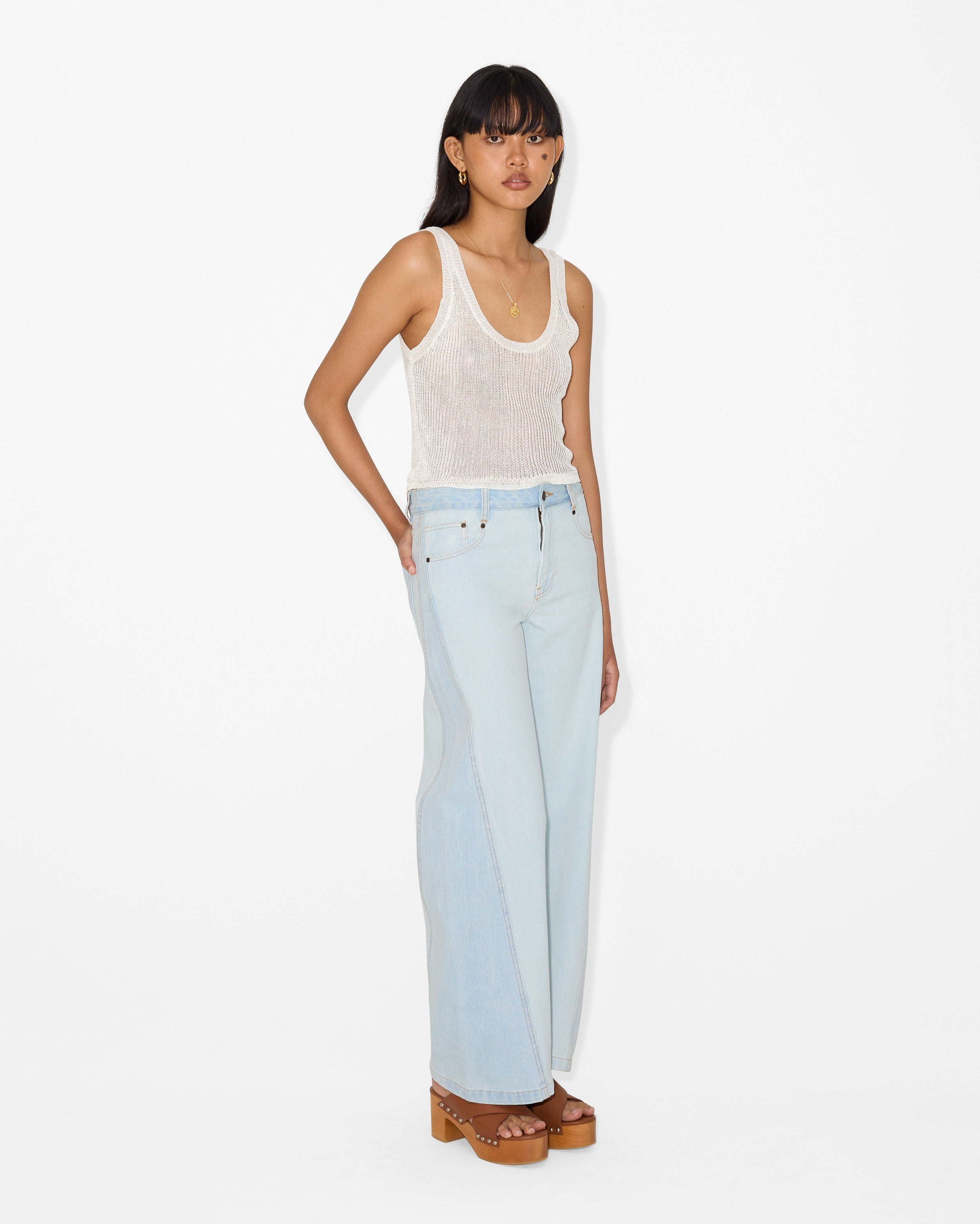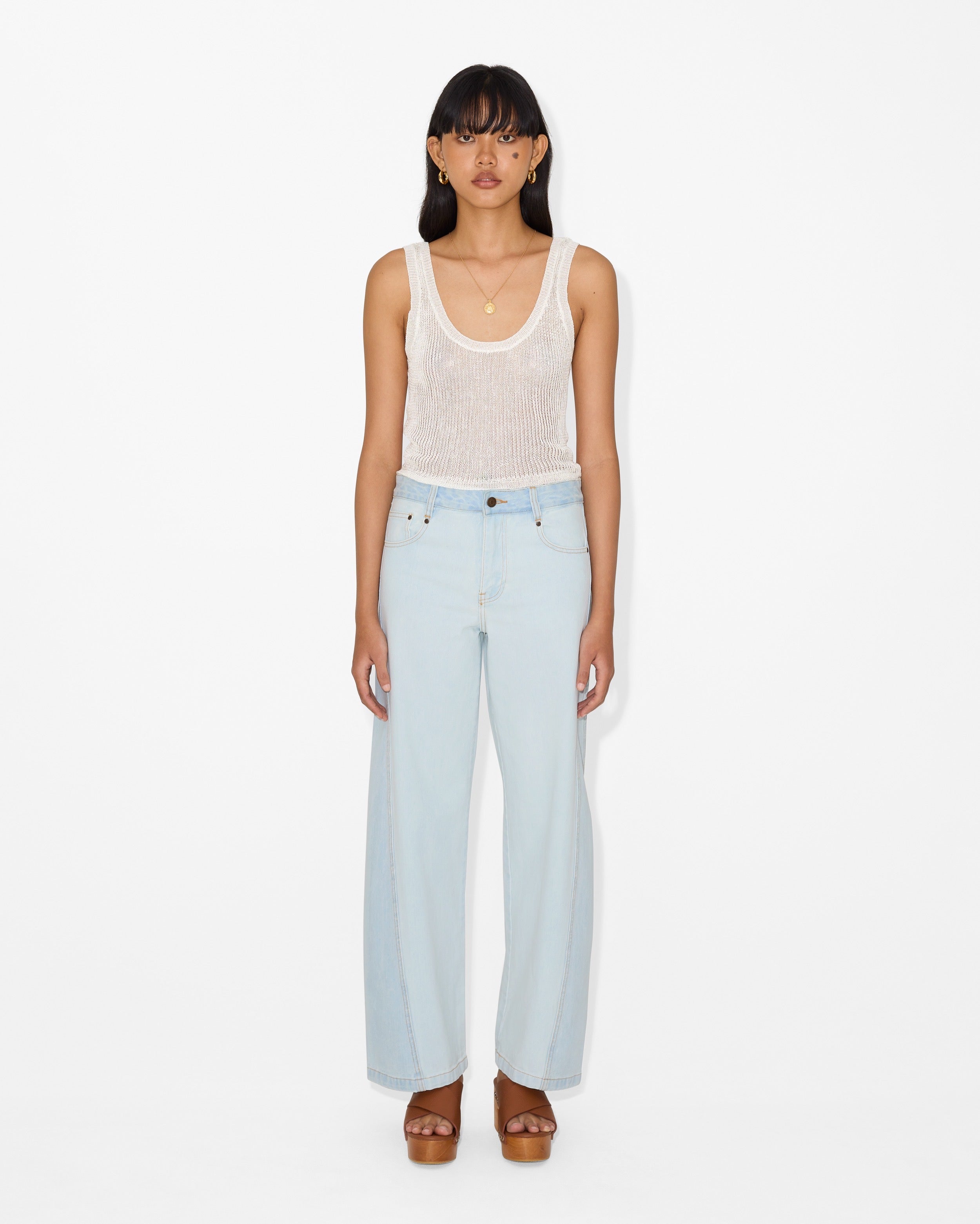 This sleek singlet combines a classic silhouette with a hint of allure, making it a perfect piece to slip on over your swimwear. Its delicate, semi-sheer knit and light-catching sparkle make it a versatile piece that can be worn for a stylish poolside lunch or a sunset stroll.