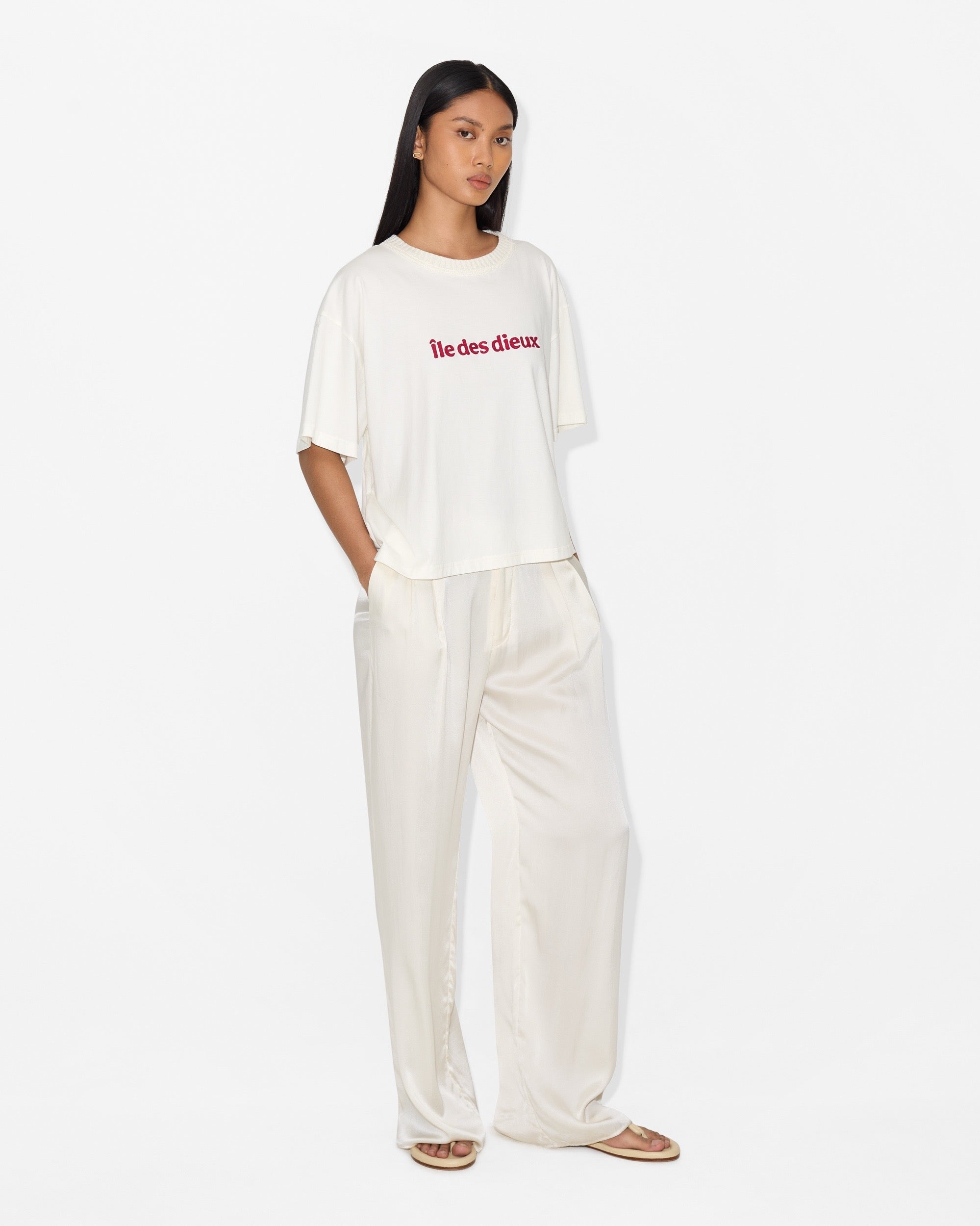 The Ile Des Dieux T-Shirt is a clean and effortless staple with a relaxed silhouette. Minimal embroidery at the front adds a subtle statement while maintaining a timeless everyday look.
