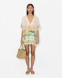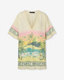 The Ipanema Tunic Dress captures the vibrant spirit of Brazil’s sun-drenched coastline. Designed with a relaxed silhouette, the piece showcases a lively beach landscape rendered in a trompe-l’œil screen print. Framed with soft fringe details, this tunic evokes the carefree charm of tropical days and effortless seaside elegance.