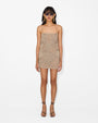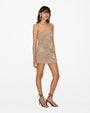 Inspired by the glamorous Paris nights of the 1920s, this collection features a new in-house embellishment technique. This sparkling mini dress evokes a celebratory feel, blending a sleek, modern silhouette with a touch of vintage allure. The wave-shaped pattern adds an artistic detail that makes it truly a standout piece