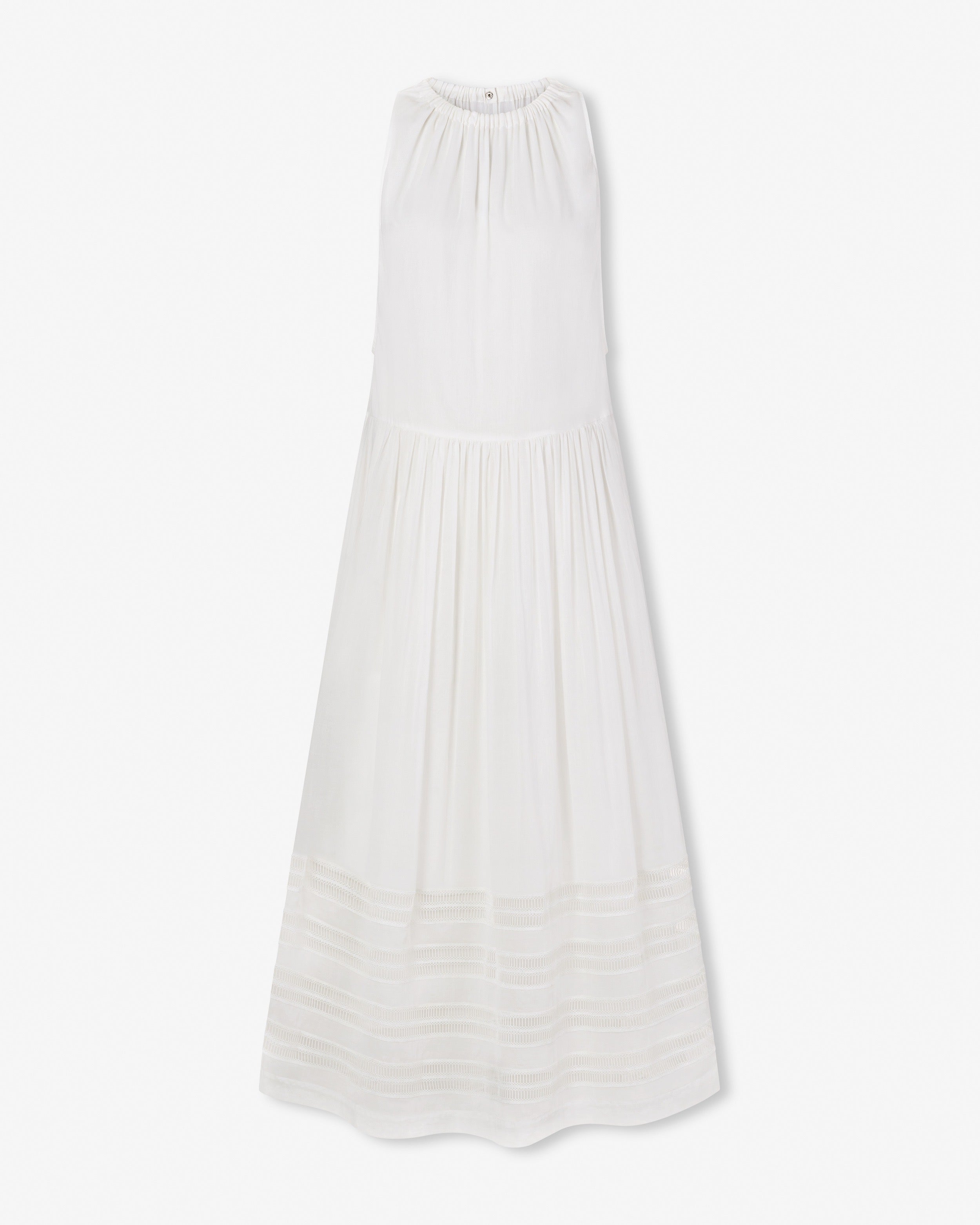 The Magda dress, in a classic shade of Off White, floats with the romance of a bygone muse, reimagined for a new era of expression.