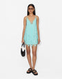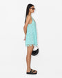 The Miranda Mini Dress features a relaxed silhouette elevated by delicate cut-out embroidery, offering a playful yet elegant look in bright, joyful color.