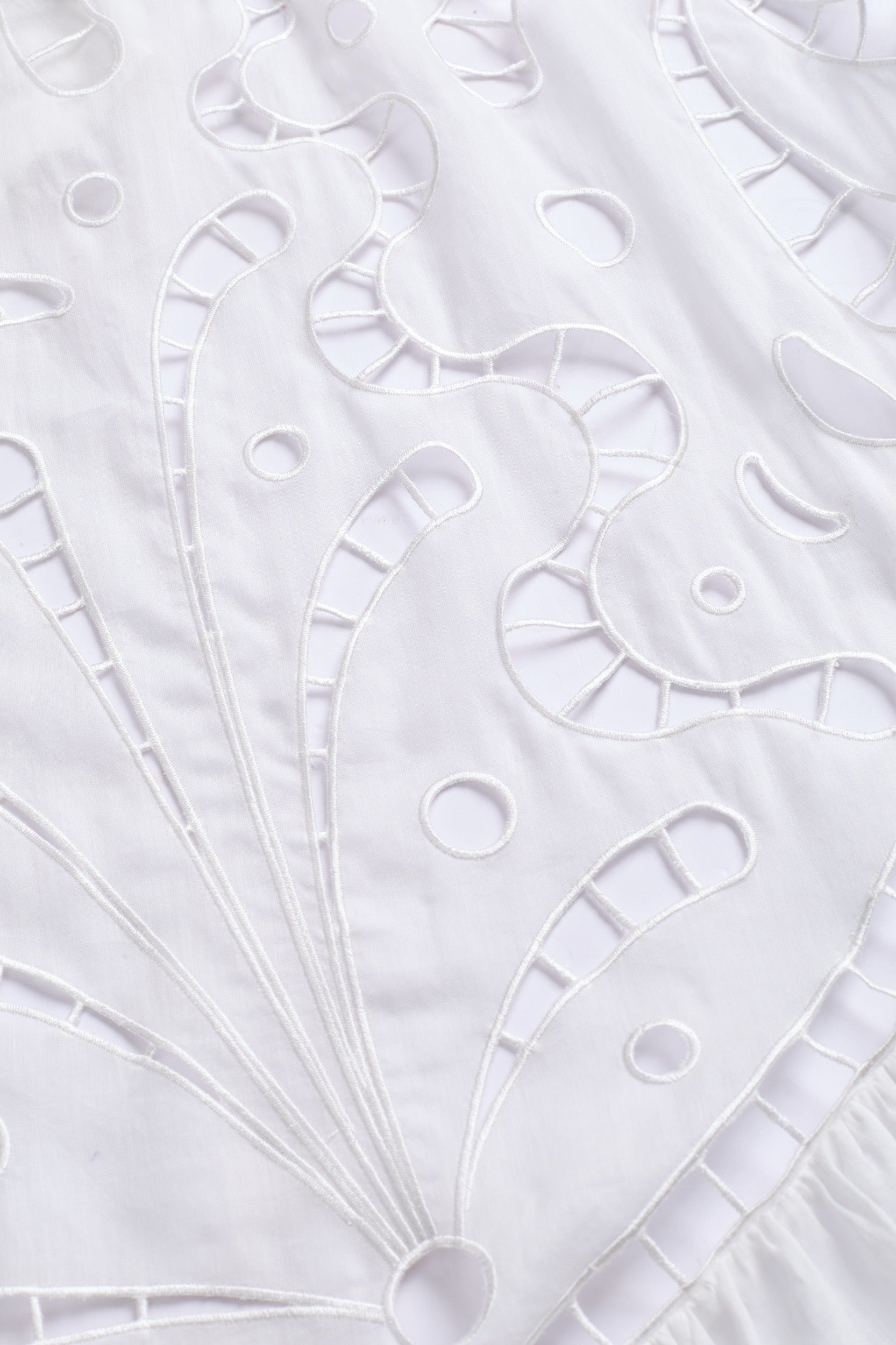 • Intricate cut-out embroidery details.