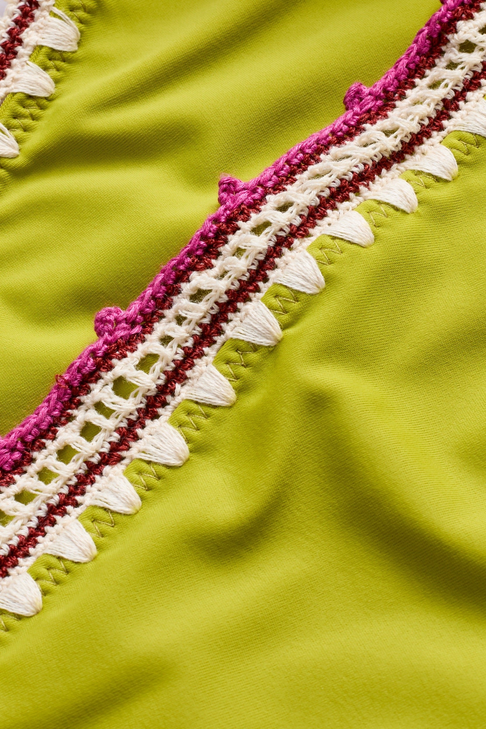 The Praia One Piece blends clean swimwear lines with handcrafted detail, featuring delicate crochet edging that adds a refined, artisanal touch to a modern silhouette.