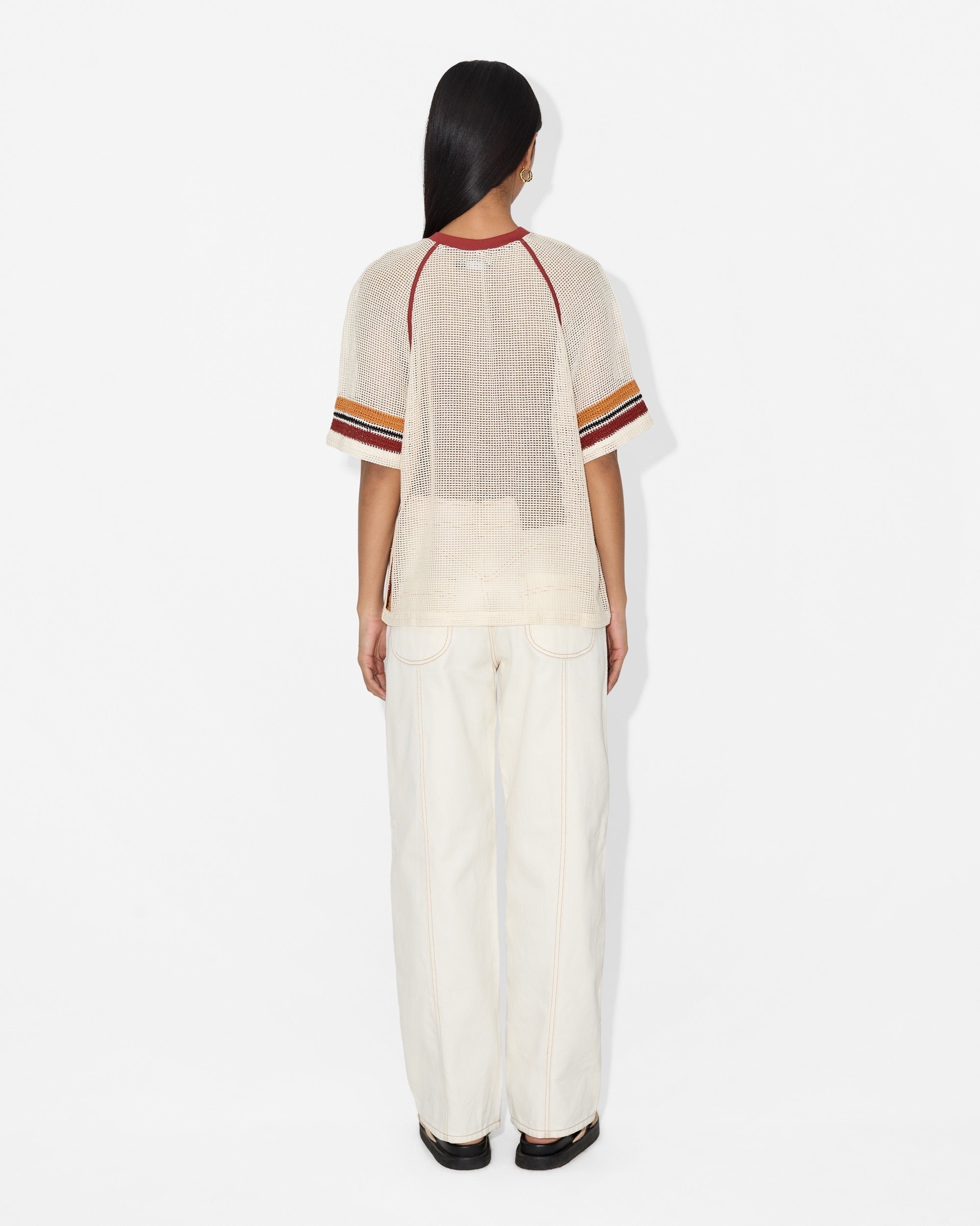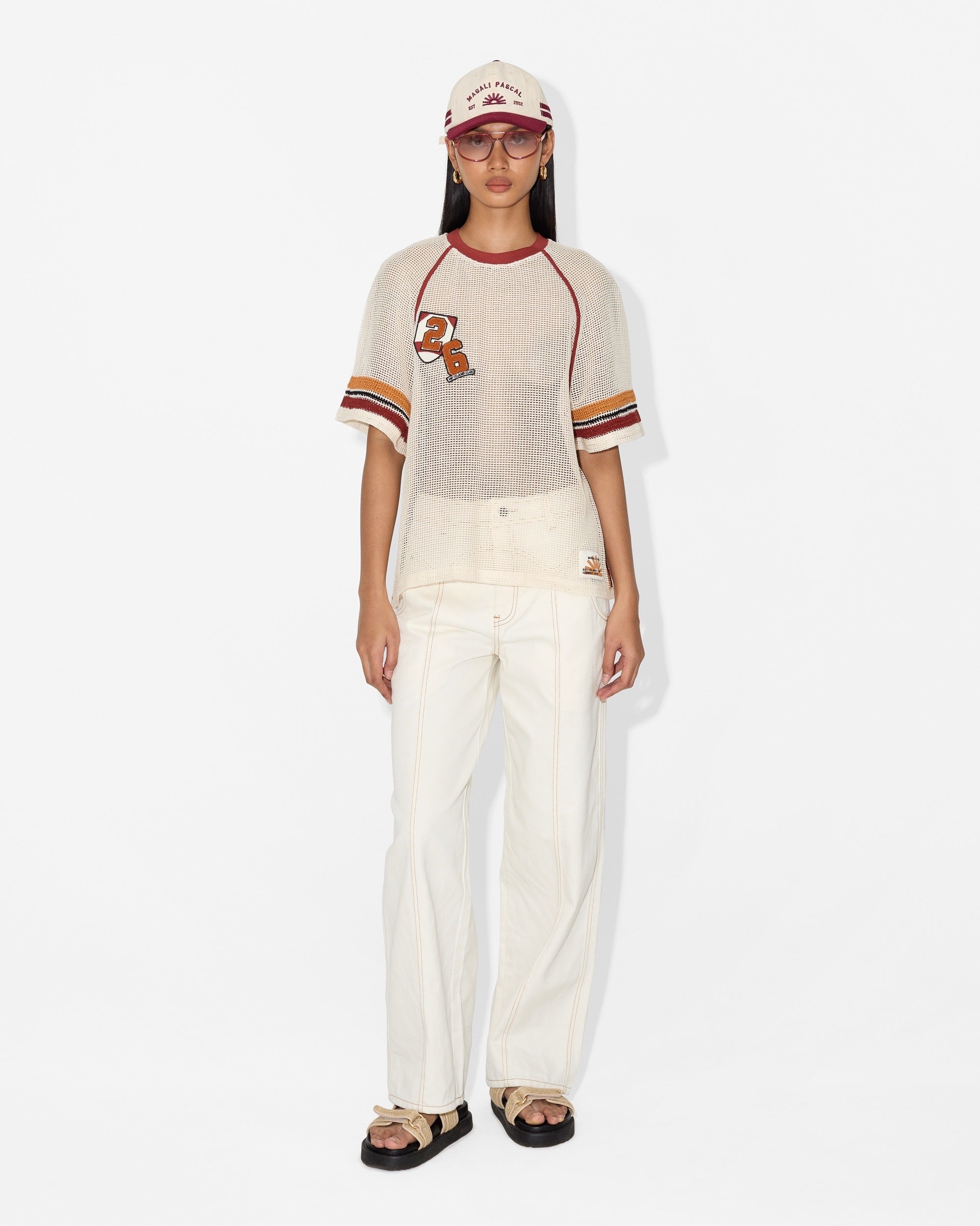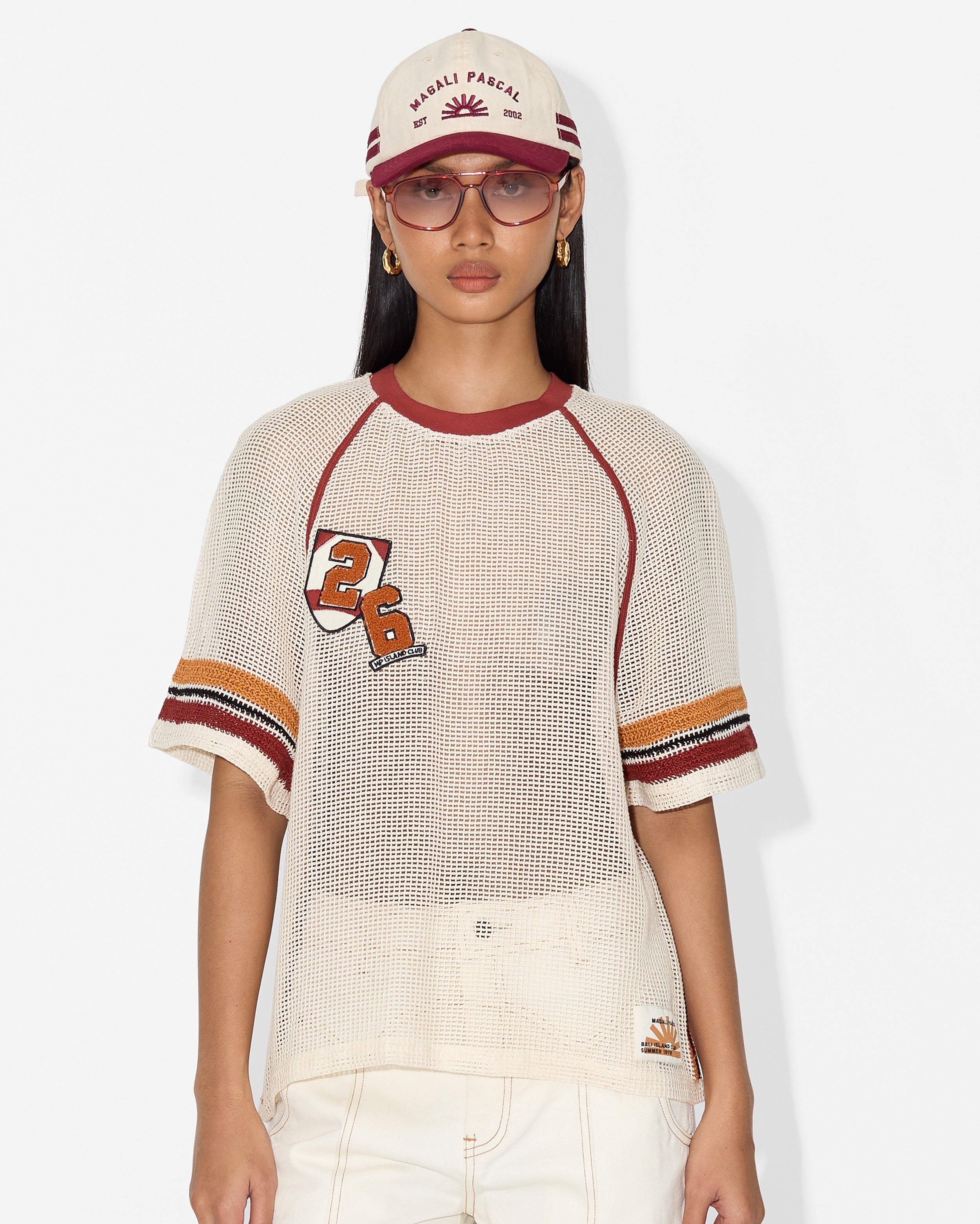 The Ronaldo T-Shirt blends sporty energy with artisanal detail, inspired by the vibrant spirit of Brazilian football culture and expressed through textured mesh and crafted embroidery.
