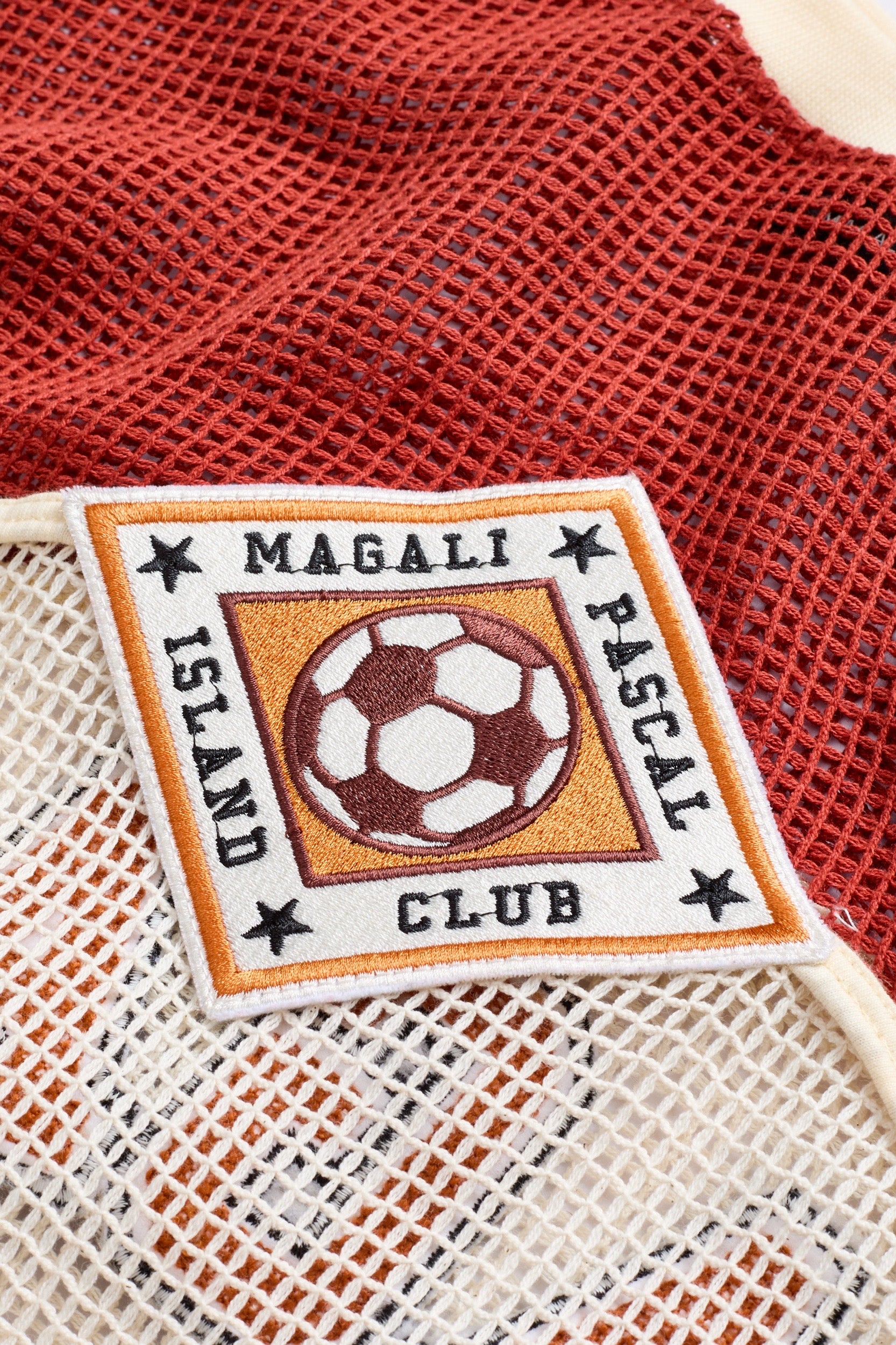 The Ronaldo T-Shirt Dress reimagines classic sportswear through a feminine oversized silhouette, celebrating Brazilian football culture with bold embroidery and textured mesh.