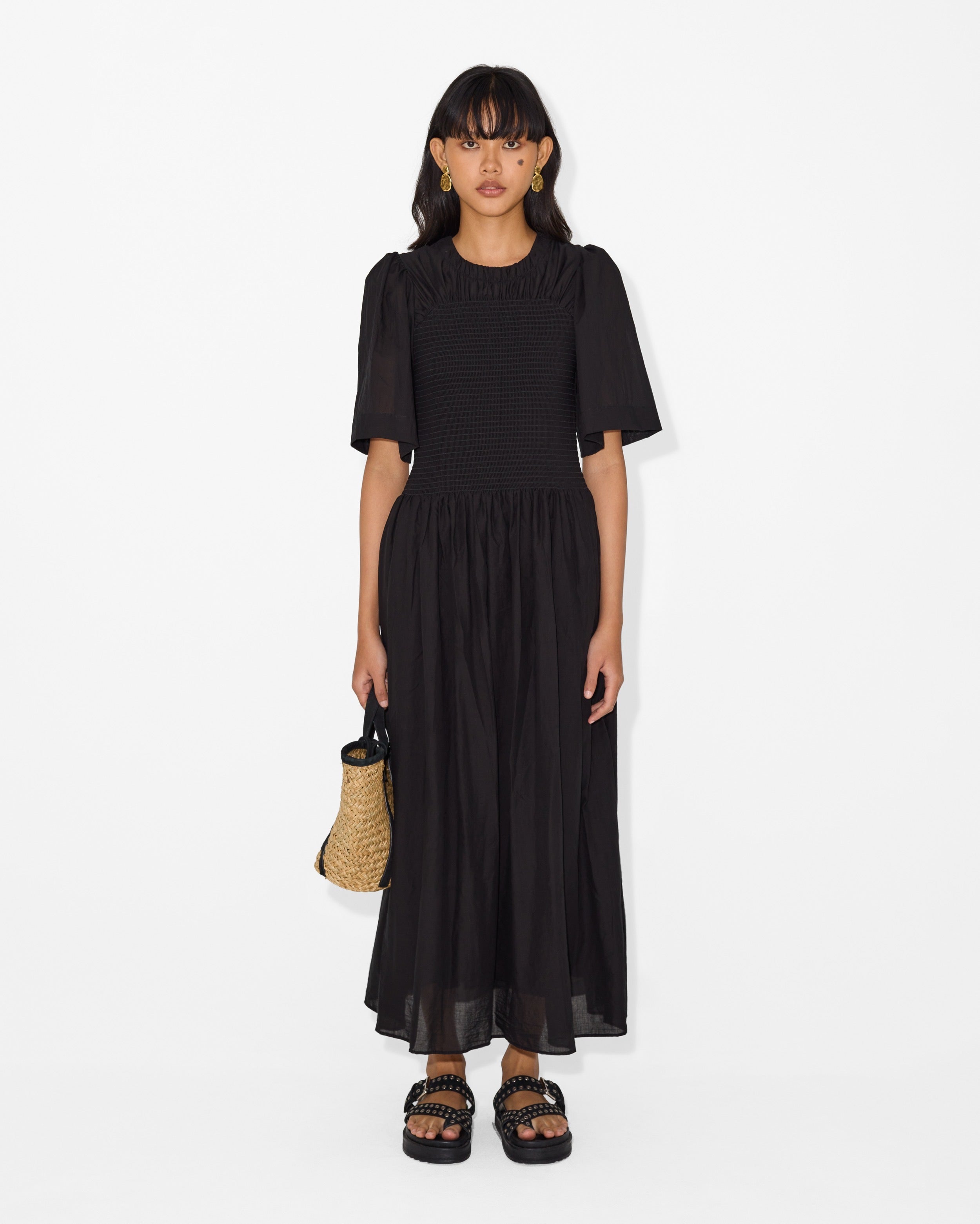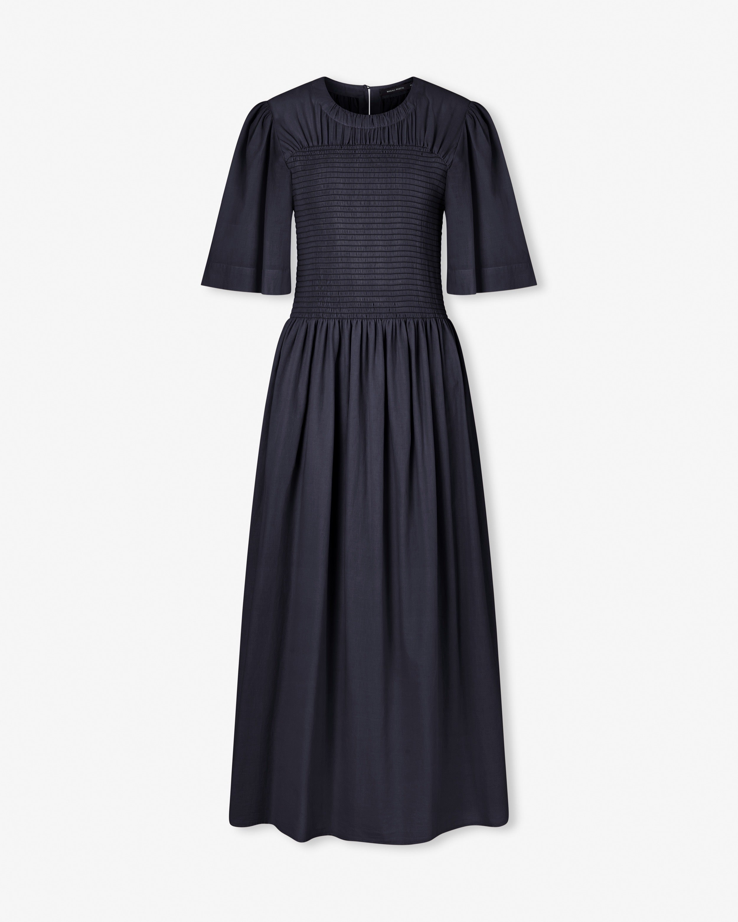 The Shirring story is a testament to the art of subtle detailing, where gathered seams create beautiful texture and volume. The Sarah Dress is a fresh take on a classic silhouette, perfect for your everyday style.